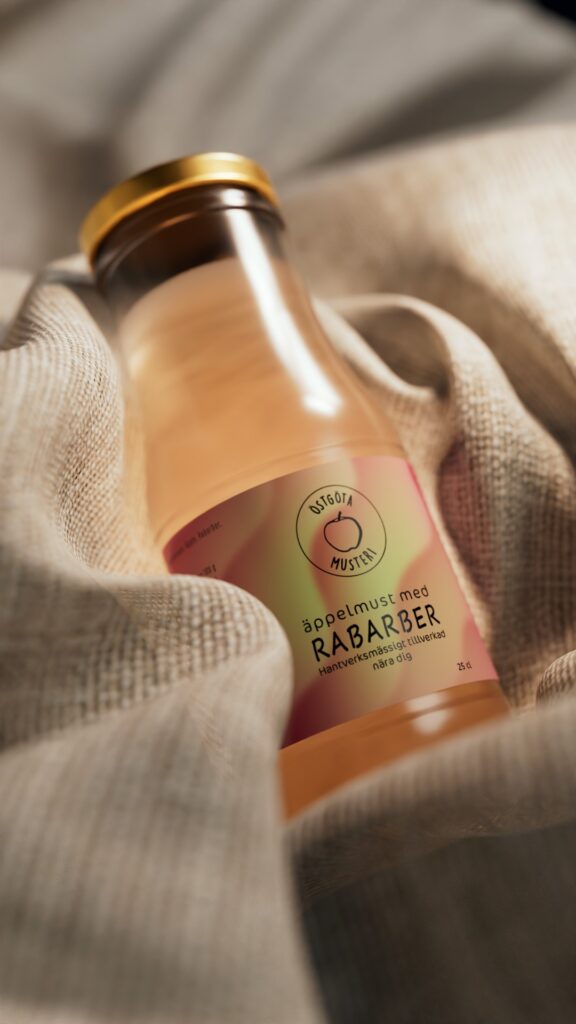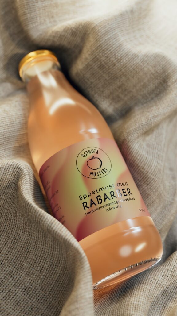 Vår äppelmust blandad med rabarber ger en lite syrligare upplevelse med smak av rabarber. Uppfriskande i vårsolen eller varför inte i en drink?